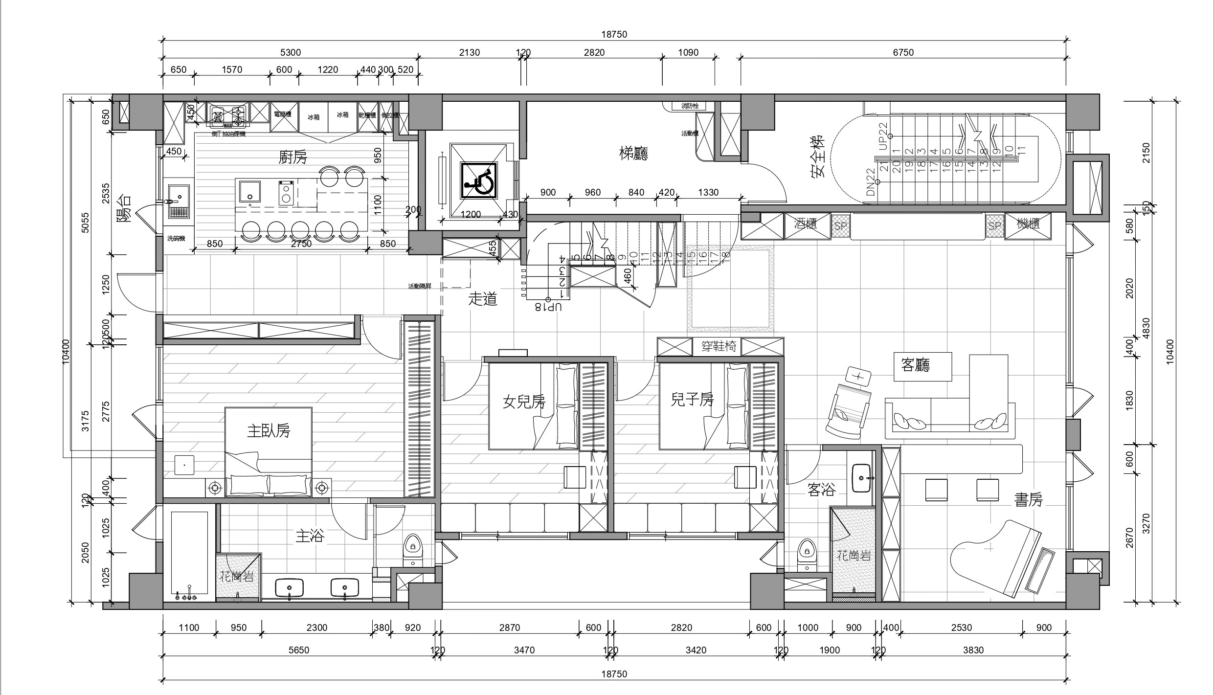 在設計上,我們強調開放感與通透性,利用大面積的窗戶和通道來引入自然光,讓整體空間感覺更加寬敞明亮。尤其是客廳和餐廳區域,這些地方應該是家庭交流的核心,開放式設計能促進互動和家庭氛圍的營造。